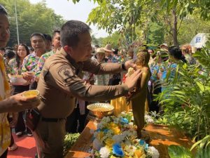 วันที่ 15 เม.ย.69 เวลาประมาณ 14.20 น. พ.ต.อ.อุรุพงษ์ ดีพิจารณ์ ผกก.สภ.ห้วยกระเจา ร่วมพิธีสรงน้ำพระ ณ วัดทิพย์สุคนธาราม ตำบลดอนแสลบโดยมี นายฑรัท เหลืองสอาด รองผู้ว่าราชการจังหวัดกาญจนบุรีเป็นประธานในพิธี สืบสาน ประเพณีวันสงกรานต์ พ.ศ 2569