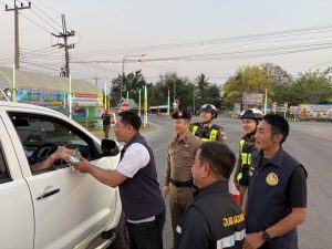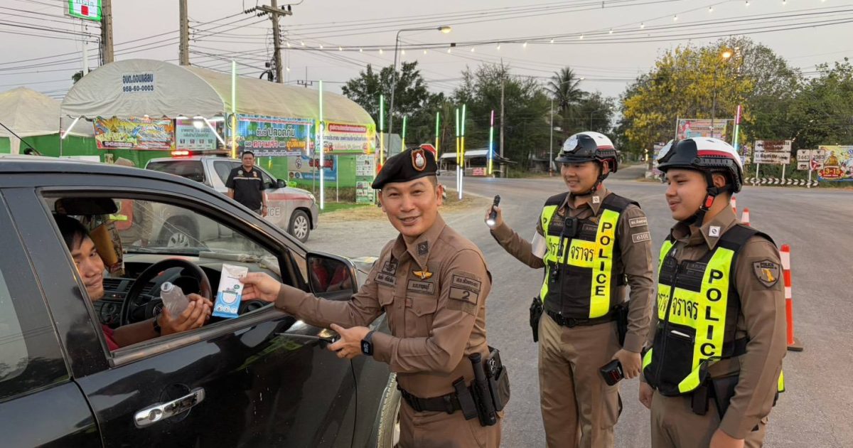 วันที่ 12 เม.ย. 2569 เวลา 18.00 น. ภายใต้การอำนวยการของ พ.ต.อ.อุรุพงษ์ ดีพิจารณ์ ผกก.สภ.ห้วยกระเจา มอบหมายให้ พ.ต.ท.รัตนชัย ศรีทับทิม รอง ผกก.ป.สภ.ห้วยกระเจา พร้อมด้วย ร้อยเวร20 สายตรวจรถยนต์ และ งานจราจร ร่วมกับฝ่ายปกครอง ตั้งจุดตรวจบริการประชาชน บริเวณสามแยกบ้านกรับ เส้นทาง ถนนตลาดใหม่ – เขาวัง (ถ. 3443) ต.ดอนแสลบ อ.ห้วยกระเจา จ.กาญจนบุรี แจกน้ำดื่ม ผ้าเย็น ให้กับประชาชน ผู้ใช้รถใช้ถนนในช่วงเทศกาลสงกรานต์ ประจำปี 2569