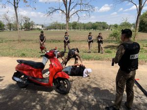 วันที่ 27 ก.พ.69 เวลาประมาณ 11.00 น. ภายใต้การอำนวยการของ พ.ต.อ.อุรุพงษ์ ดีพิจารณ์ ผกก.สภ.ห้วยกระเจา มอบหมาย พ.ต.ท.รัตนชัย ศรีทับทิม รอง ผกก.ป.สภ.ห้วยกระเจา พร้อมด้วย ร้อยเวร20 ,สายตรวจรถยนต์ ,จราจร และชุดสืบสวน ซ้อมแผนเผชิญเหตุ เหตุการณ์สมมติ คนร้ายชิงทรัพย์ร้านทอง โดยใช้อาวุธปืนในการชิงทรัพย์ ณ บริเวณร้านทอง