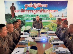 วันที่ 11 ต.ค.68 เวลา 13.30 น. พล.ต.ท.พิสิฐ ตันประเสริฐ ผบช.ภ.7 ตรวจเยี่ยม สภ.ห้วยกระเจา จว.กาญจนบุรี โดยมี พล.ต.ต.พศวีร์ เรืองภู่ ผบก.ภ.จว.กาญจนบุรี พร้อมด้วยข้าราชการตำรวจภูธรกาญจนบุรี ให้การต้อนรับ เพื่อรับทราบการปฏิบัติราชการ ข้อมูลปัญหาอุปสรรค และความต้องการสนับสนุนการปฏิบัติงานในพื้นที่ รวมทั้งมอบนโยบายการปฏิบัติงานแก่ข้าราชการตำรวจในสังกัด