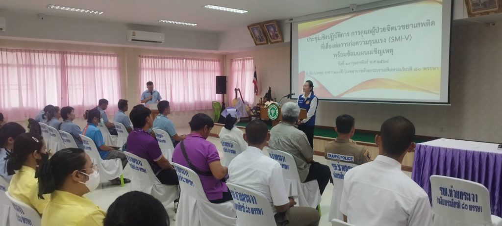 - วันที่ 19 ก.พ.68 เวลา 15.30 น. พ.ต.ต.อวิรุทธ์ อัยกูล สวป.สภ.ห้วยกระเจา พร้อมด้วย ร้อยเวร 20 สายตรวจรถยนต์ และจราจร ร่วมประชุมเชิงปฎิบัติการ การดูแลผู้ป่วยจิตเวชยาเสพติดที่เสี่ยงต่อการก่อความรุนแรง (SMI-V) พร้อมซ้อมแผนเผชิญเหตุ ณ ร.พ.ห้วยกระเจา