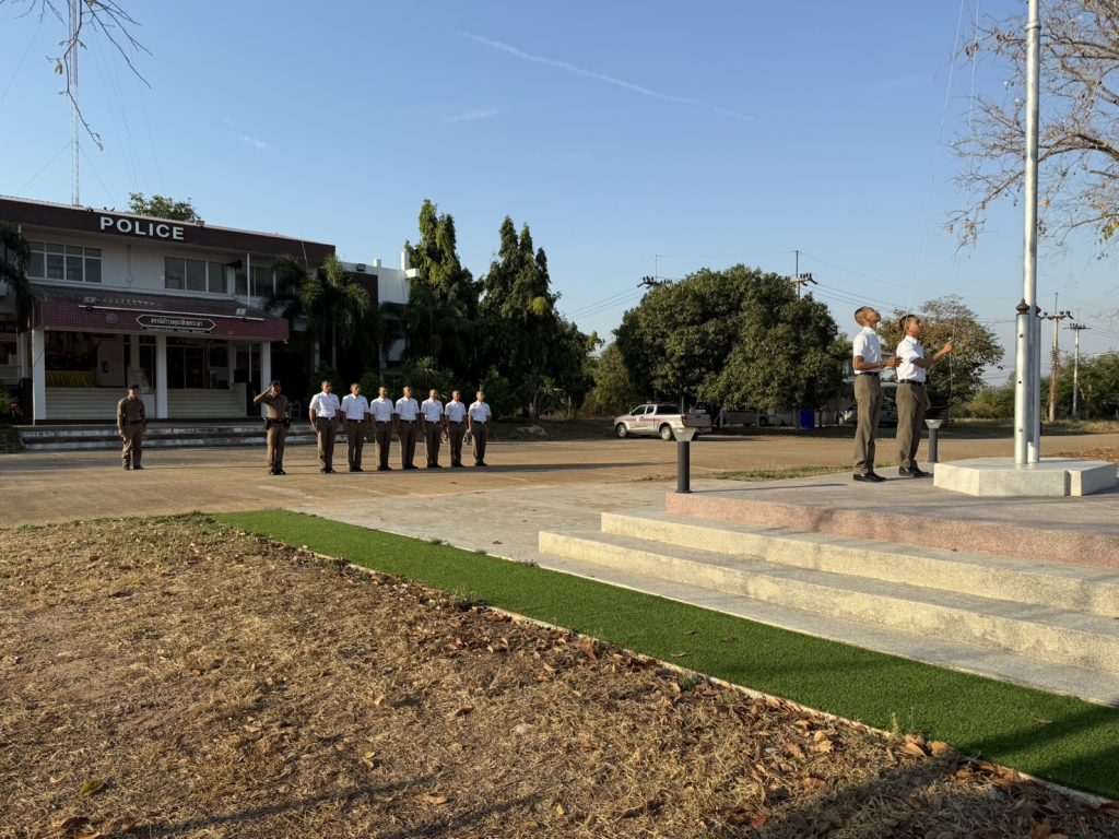 - วันที่ 27 ก.พ.68 เวลา 08.00 น.พ.ต.ต.อวิรุทธ์ อัยกูล สวป.สภ.ห้วยกระเจา พร้อมด้วย ร.ต.ท.สุทัศน์ กลีบทอง รอง สว.(ป).สภ.ห้วยกระเจา ปฏิบัติหน้าที่นายร้อยตำรวจเวร 20 ได้เรียกแถวสายตรวจรถยนต์ผลัดเก่า- ใหม่สิบเวร เข้าแถวเคารพธงชาติ สวดมนต์ กล่าวคำสัตย์ ปฏิญาณ อุดมคติตำรวจกล่าววิสัยทัศน์ชี้แจงการปฏิบัติหน้าที่ ทบทวนยุทธวิธี ตรวจเครื่องแบบ ทรงผม ตรวจห้องควบคุมมีสภาพมั่นคงแข็งแรง มีผู้ต้องหาชาย 1 คนอยู่ในความควบคุมเสร็จแล้วปล่อยแถวออกตรวจในเขตพื้นที่รับผิดชอบต่อไป