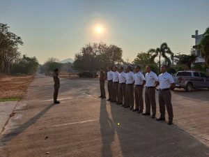 - วันที่ 18 ก.พ.68 เวลา 08.00 น.พ.ต.ต.อวิรุทธ์ อัยกูล สวป.สภ.ห้วยกระเจา พร้อมด้วย ร.ต.ต.พิเชษฐ์ วิเศษสิงห์ รอง สว.(ป).สภ.ห้วยกระเจา ปฏิบัติหน้าที่นายร้อยตำรวจเวร 20 ได้เรียกแถวสายตรวจรถยนต์ผลัดเก่า- ใหม่ สิบเวร นักเรียนนายสิบตำรวจฝึกงาน เข้าแถวเคารพธงชาติ สวดมนต์ กล่าวคำสัตย์ ปฏิญาณ อุดมคติตำรวจกล่าววิสัยทัศน์ชี้แจงการปฏิบัติหน้าที่ ทบทวนยุทธวิธี ตรวจเครื่องแบบ ทรงผม ตรวจห้องควบคุม เสร็จแล้วปล่อยแถวออกตรวจในเขตพื้นที่รับผิดชอบต่อไป