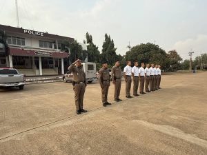 - วันที่ 17 ก.พ.68 เวลา 08.00 น.พ.ต.ต.อวิรุทธ์ อัยกูล สวป.สภ.ห้วยกระเจา พร้อมด้วย ร.ต.ท.สุทัศน์ กลีบทอง รอง สว.(ป).สภ.ห้วยกระเจา ปฏิบัติหน้าที่นายร้อยตำรวจเวร 20 ได้เรียกแถวสายตรวจรถยนต์ผลัดเก่า- ใหม่สิบเวร ทบทวนยุทธวิธี แล้วปล่อยแถวออกตรวจในเขตพื้นที่รับผิดชอบต่อไป