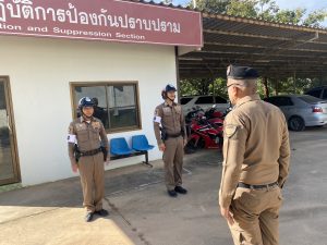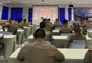 - วันที่ 23 ธ.ค.67 เวลา 08.00 น.พ.ต.ต.อวิรุทธ์ อัยกูล สวป.สภ.ห้วยกระเจา พร้อมด้วย ร.ต.ต.สุทัศน์ กลีบทอง รอง สว.(ป).สภ.ห้วยกระเจา ปฏิบัติหน้าที่นายร้อยตำรวจเวร 20 ได้เรียกแถวงานจราจร เข้าแถวเคารพธงชาติ สวดมนต์ กล่าวคำสัตย์ ปฏิญาณ อุดมคติตำรวจกล่าววิสัยทัศน์ชี้แจงการปฏิบัติหน้าที่ ทบทวนยุทธวิธี ตรวจเครื่องแบบ ทรงผม ตรวจห้องควบคุม เสร็จแล้วปล่อยแถวออกตรวจในเขตพื้นที่รับผิดชอบต่อไป