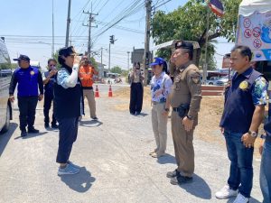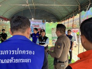 วันที่ 13ม.ย.69 เวลาประมาณ 13.00 – 13.30 น. พ.ต.อ.อุรุพงษ์ ดีพิจารณ์ ผกก.สภ.ห้วยกระเจา พร้อมข้าราชการตำรวจ ดูแลรักษาความปลอดภัยและอำนวยความสะดวกด้านการจราจร ณ จุดบริการประชาชน สี่แยกห้วยยาง ต.สระลงเรือ และสามแยกบ้านกรับ ต.ดอนแสลบ โดยมี นางสาว วริษฐา สงวนเสริมศรี ผู้ว่าราชการจังหวัดกาญจนบุรีมาตรวจเยี่ยมพร้อมมอบสิ่งของเพื่อเป็นขวัญและกำลังใจให้แก่เจ้าหน้าที่ผู้ปฏิบัติหน้าที่ทุกฝ่ายช่วงเทศกาลวันสงกรานต์ปี 2569