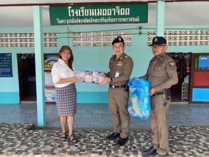 พ.ต.อ.อุรุพงษ์ ดีพิจารณ์ ผกก.สภ.ห้วยกระเจา มอบตุ๊กตาของขวัญวันเด็ก ให้กับผู้แทนโรงเรียนเมตตาจิตต หมู่ที่ 4 บ้านหมู่บ้านหนองบัวหิ่ง ตำบลสระลงเรือ อำเภอห้วยกระเจา จังหวัดกาญจนบุรี