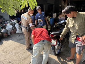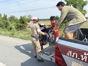 วันที่ 1 พ.ค. 2568 เวลา 16.00 น. ร.ต.ท.อำนาจ แสงเพชร รอง สว.(ป.) สภ.ห้วยกระเจา และส.ต.ท.นฤปนาท ธนรักษ์โยธิน ผบ.หมู่(ป.) สภ.ห้วยกระเจา ปฏิบัติหน้าที่จราจร ขณะออกตรวจเส้นทาง ถ.วังขอน-บ่อพลอย ต.ห้วยกระเจา พบผู้ขับขี่รถจักรยานยนต์ขัดข้อง เนื่องจาก ลูกปืนล้อรถแตก ได้ให้การช่วยเหลือนำไปส่งที่ร้านซ่อมรถจักรยานยนต์ และดำเนินการซ่อมเสร็จ สามารถเดินทางต่อไปได้