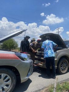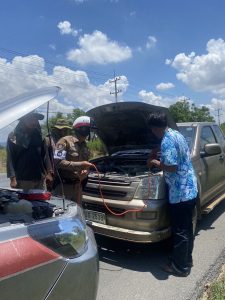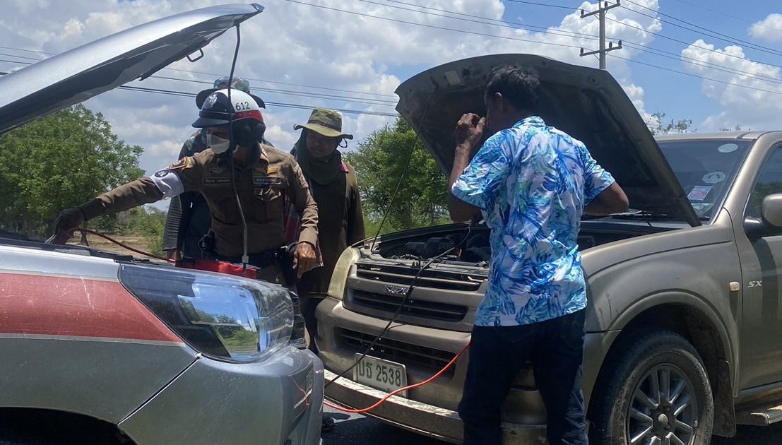 วันที่ 13 เม.ย. 2568 เวลา 15.30 น. ร.ต.ท.อำนาจ แสงเพชร รอง สว.(ป.) สภ.ห้วยกระเจา และ จ.ส.ต.ธเนศ ตะก้อง ผบ.หมู่(ป.) สภ.ห้วยกระเจา ทำหน้าที่จราจร ออกตรวจเส้นทางในพื้นที่ พบประชาชนผู้ใช้รถจอดเสียในเส้นทาง ตรวจสอบพบว่าแบตเตอรี่หมดสตาร์ทไม้ได้ จึงให้การช่วยเหลือทำการต่อพ่วงจนสตาร์ทติดได้เรียบร้อย สามารถเดินทางต่อไปได้ บริเวณถนนอู่ทอง – บ่อพลอย ต.ดอนแสลบ อ.ห้วยกระเจา จ.กาญจนบุรี