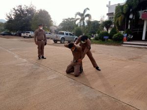 พ.ต.ต.อวิรุทธ์ อัยกูล สวป.สภ.ห้วยกระเจา ได้เรียกแถวสายตรวจรถยนต์ผลัดเก่า- ใหม่สิบเวร เข้าแถวเคารพธงชาติ สวดมนต์ กล่าวคำสัตย์ ปฏิญาณ อุดมคติตำรวจกล่าววิสัยทัศน์ชี้แจงการปฏิบัติหน้าที่ ทบทวนยุทธวิธี ตรวจเครื่องแบบ ทรงผม ตรวจห้องควบคุม และปล่อยแถวออกตรวจในเขตพื้นที่รับผิดชอบ