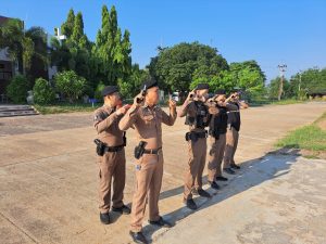 วันที่ 2เม.ย.69 เวลา 08.00 น.พ.ต.ท.รัตนชัย ศรีทับทิม รอง ผกก.ป.สภ.ห้วยกระเจา พ.ต.ท.อวิรุธ อัยกูล สวป.สภ.ห้วยกระเจา พร้อมด้วย ร.ต.ท.พิเชษฐ์ วิเศษสิงห์ รอง สว.(ป).สภ.ห้วยกระเจา ปฏิบัติหน้าที่นายร้อยตำรวจเวร 20 ได้เรียกแถวสายตรวจรถยนต์ผลัดเก่า เข้าแถวเคารพธงชาติ สวดมนต์ กล่าวคำสัตย์ ปฏิญาณ อุดมคติตำรวจกล่าววิสัยทัศน์ชี้แจงการปฏิบัติหน้าที่ ทบทวนยุทธวิธี ตรวจเครื่องแบบ ทรงผม ตรวจห้องควบคุม เสร็จแล้วปล่อยแถวออกตรวจในเขตพื้นที่รับผิดชอบต่อไป