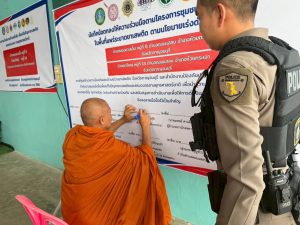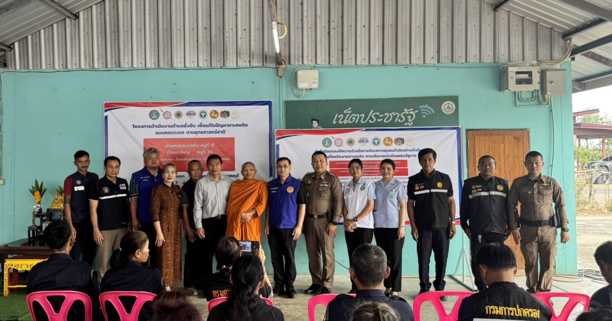 พ.ต.อ.อุรุพงษ์ ดีพิจารย์ ผกก สภ.ห้วยกระเจา พ.ต.ท.รัตนชัย ศรีทับทิม รอง ผกก.ป.สภ.ห้วยกระเจา และชุดปฏิบัติการตำบลยั่งยืน สภ.ห้วยกระเจา พร้อมด้วย ปลัดอำเภอห้วยกระเจา ฝ่ายปกครอง สาธารณสุขอำเภอห้วยกระเจา รพ.ห้วยกระเจา นายกองค์การบริหารส่วนตำบลดอนแสลบ พัฒนาชุมชนอำเภอห้วยกระเขา กำนันตำบลดอนแสลบ ผู้ใหญ่บ้าน หมู่ 8 และ หมู่ 14 ตำบลดอนแสลบ ภาคีเครือข่าย / ประชาชน ฯลฯ ร่วมเปิดโครงการดำเนินงานตำบลยั่งยืนเพื่อแก้ไขปัญหายาเสพติดแบบครบวงจรตามยุทธศาสตร์ชาติ ประจำปีงบประมาณ 2569 และร่วมลงนาม MOU โดยมี นายปิยะพงศ์ จันทร์อนันต์ ปลัดอำเภอห้วยกระเจา หัวหน้าบริหารงานปกครอง (ปลัดอาวุโส) เป็นประธาน ณ ศาลาเอนกประสงค์บ้านหนองนางเลิ้ง หมู่8 ต.ดอนแสลบ อ.ห้วยกระเจาจว.กาญจนบุรี
