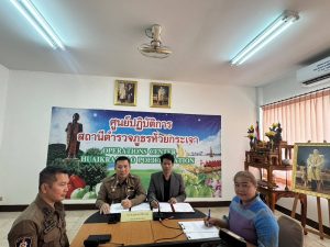 วันที่ 17 มีนาคม 2569 เวลา 13.00 น. พ.ต.อ.อุรุพงษ์ ดีพิจารณ์ ผกก.สภ.ห้วยกระเจา พ.ต.ท.รัตนชัย ศรีทับทิม รอง ผกก.ป.สภ.ห้วยกระเจา และ ว่าที่ ร.ต.กมล นิลโรจน์ ผอ.โรงเรียนอ่างหิน ร่วมทำบันทึกข้อตกลงความร่วมมือ MOU โครงการสถานศึกษาสีขาว ปลอดยาเสพติด ระหว่าง สภ.ห้วยกระเจา กับโรงเรียนอ่างหิน ต.วังไผ่ อ.ห้วยกระเจา จ.กาญจนบุรี ณ ห้องประชุม สภ.ห้วยกระเจา