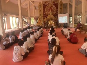 พ.ต.ท.เสกสิทธิ์ จันทร รอง ผกก.ป.สภ.ห้วยกระเจา บรรยายโครงการอบรมคุณธรรมนำใจห่างไกลจากยาเสพติด ให้กับผู้เข้าอบรมจากศูนย์ส่งเสริมการเรียนรู้อำเภอห้วยกระเจา ณ วัดทิพย์สุคนธารามฯ
