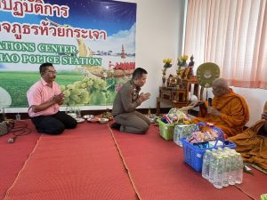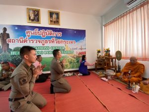 พ.ต.อ.อุรุพงษ์ ดีพิจารณ์ ผกก.สภ.ห้วยกระเจา พร้อม พ.ต.ท.เสกสิทธิ์ จันทร รอง ผกก.ป.ฯ , พ.ต.ท.ทิวา ภิรมย์เจียว รอง ผกก.สส.ฯ , พ.ต.ท.ประชา นาคราช รอง ผกก.(สอบสวน.)ฯ , พ.ต.ท.ประพันธ์ มั่นพุฒ สว.(สอบสวน)ฯ ,พ.ต.ท.คณิต แผนสมบูรณ์ สว.สส.ฯ , พ.ต.ต.อวิรุทธ์ อัยกูล สวป.ฯ , พ.ต.ต.สมบัตร ค้ายาดี สว.ธร.ฯ และ ข้าราชการตำรวจ สภ.ห้วยกระเจา ร่วมพิธีวันตำรวจประจำปี 2566 ณ สภ.ห้วยกระเจา