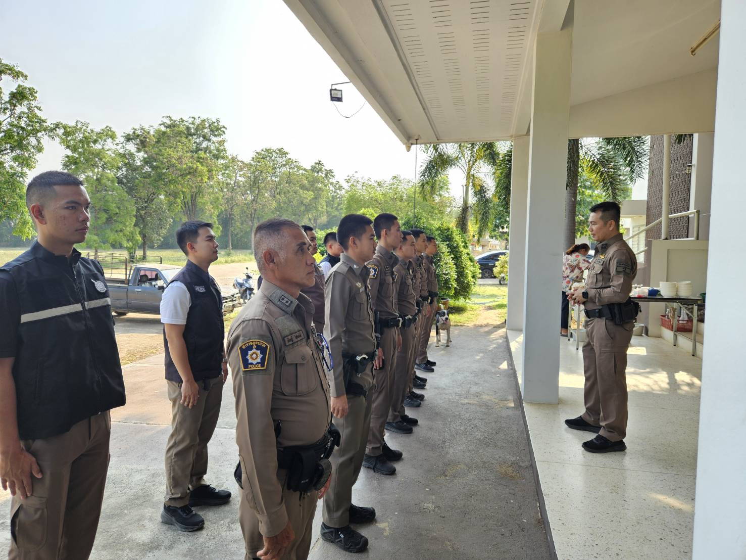 เข้าแถวเคารพธงชาติ ชี้แจงการปฏิบัติหน้าที่ ทบทวนยุทธวิธี
