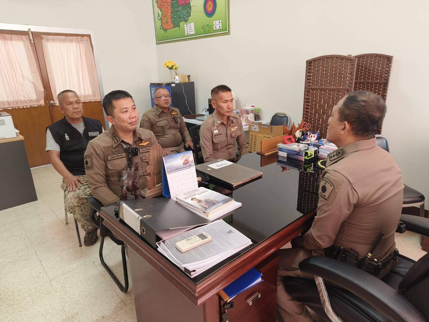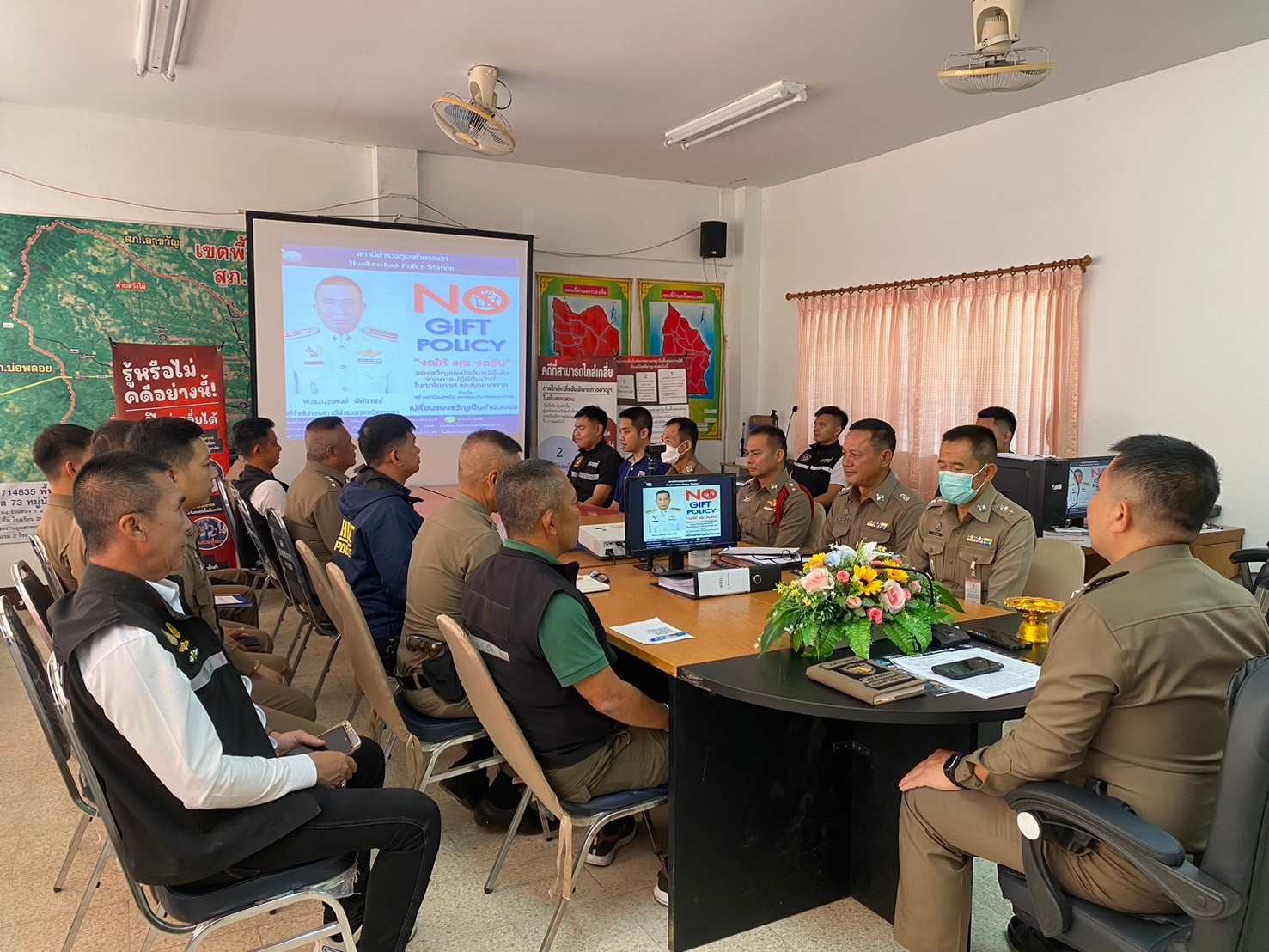เมื่อวันที่ 6 กุมภาพันธ์ 2567 พ.ต.อ.อุรุพงษ์ ดีพิจารณ์ ผกก.สภ.ห้วยกระเจา จัดประชุมข้าราชการตำรวจในส