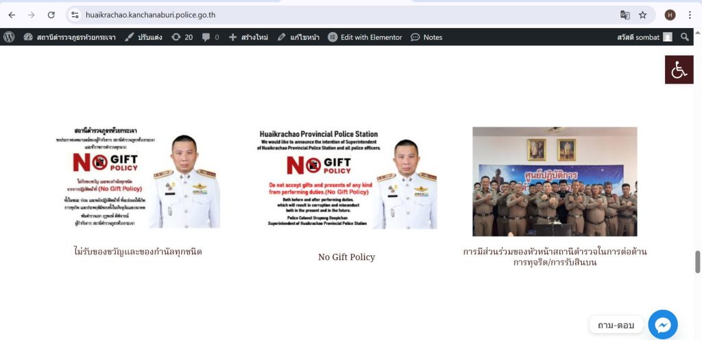 การเผยแพร่ อินโฟกราฬิกนโยบายไม่รับของขวัญและของกำนัลทุกชนิด (No Gift Policy) จากการปฏิบัติหน้าที่ ทั้งภาษาไทยและภาษาอังกฤษ ณ จุดบริการ และจุดประชาสัมพัมพันธ์