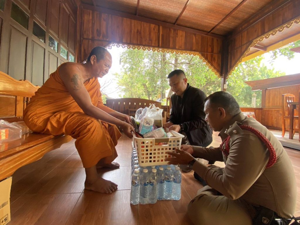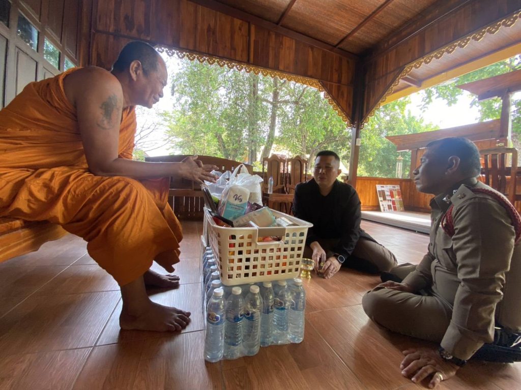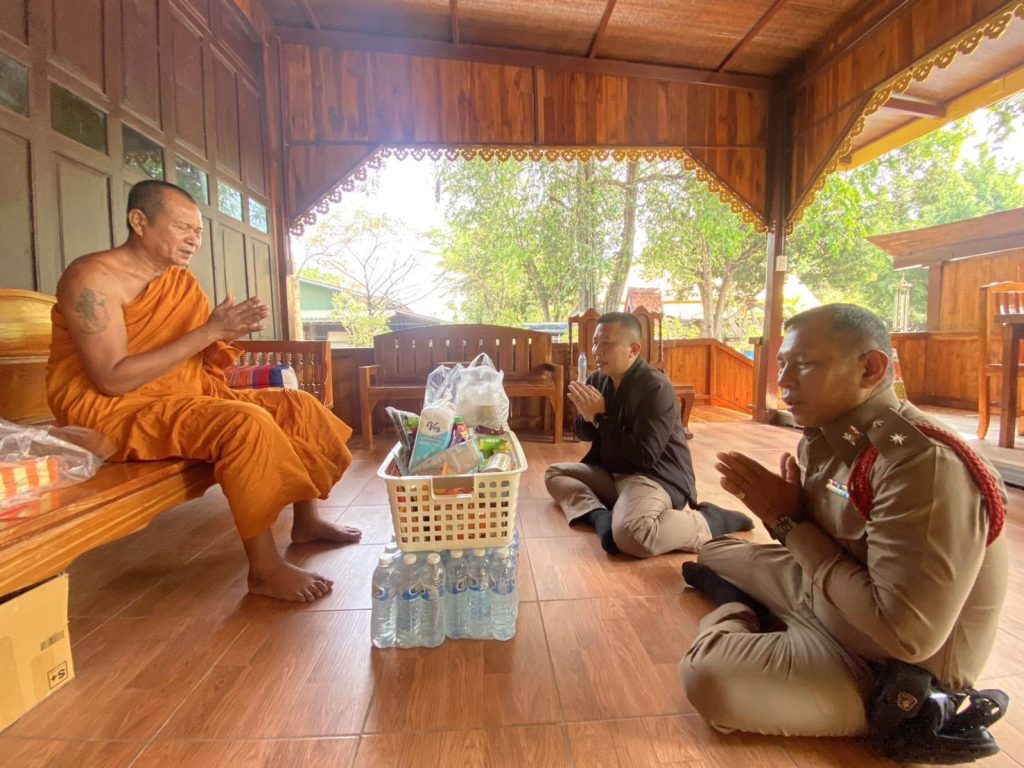 วันที่ 24 เม.ย. 69 เวลาประมาณ 09.40 น. พ.ต.อ.อุรุพงษ์ ดีพิจารณ์ ผกก.สภ.ห้วยกระเจา ออกตรวจดูแลความสงบเรียบร้อยป้องกันเหตุอาชญากรรมในพื้นที่รับผิดชอบ ณ วัดเขารักษ์ หมู่ที่ 5 ต.ดอนแสลบ อ.ห้วยกระเจา พบ พระครูกาญจนคีรีรักษ์ เจ้าอาวาส วัดเขารักษ์ ได้ทำบุญถวายสังฆทาน พบปะพูดคุยกับประชาชน (stop walk and talk) และบริการประชาชนและป้องกันเหตุในพื้นที่รับผิดชอบเหตุการณ์ทั่วไปปกติ